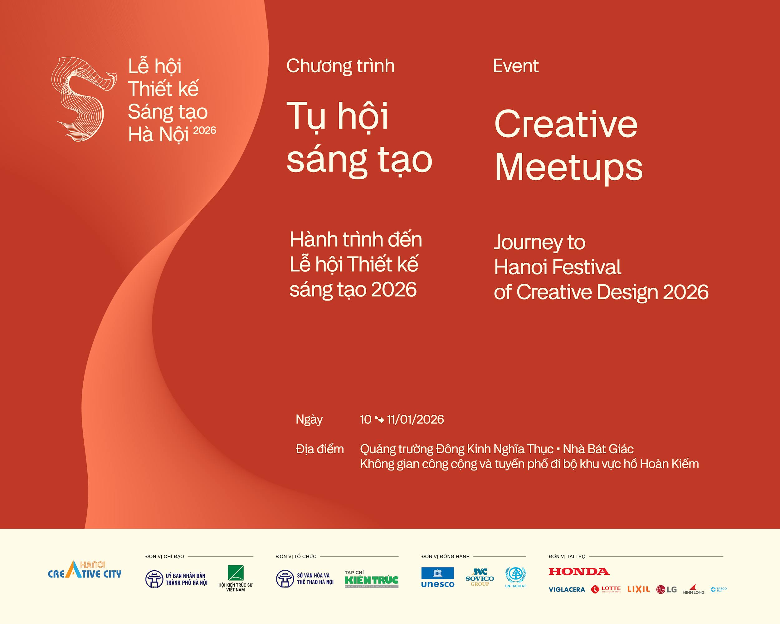 Lễ hội Thiết kế Sáng tạo Hà Nội 2026 chính thức mời gọi các dự án và ý tưởng sáng tạo tham gia: Trưng bày, kết nối trong Chương trình Khởi động “Tụ hội Sáng tạo”, diễn ra vào ngay đầu năm tháng 01/2026 tại không gian đi bộ hồ Hoàn Kiếm và Ghi danh vào danh bạ sáng kiến sáng tạo Hà Nội, có cơ hội được đánh giá và xem xét hỗ trợ phát triển phù hợp.