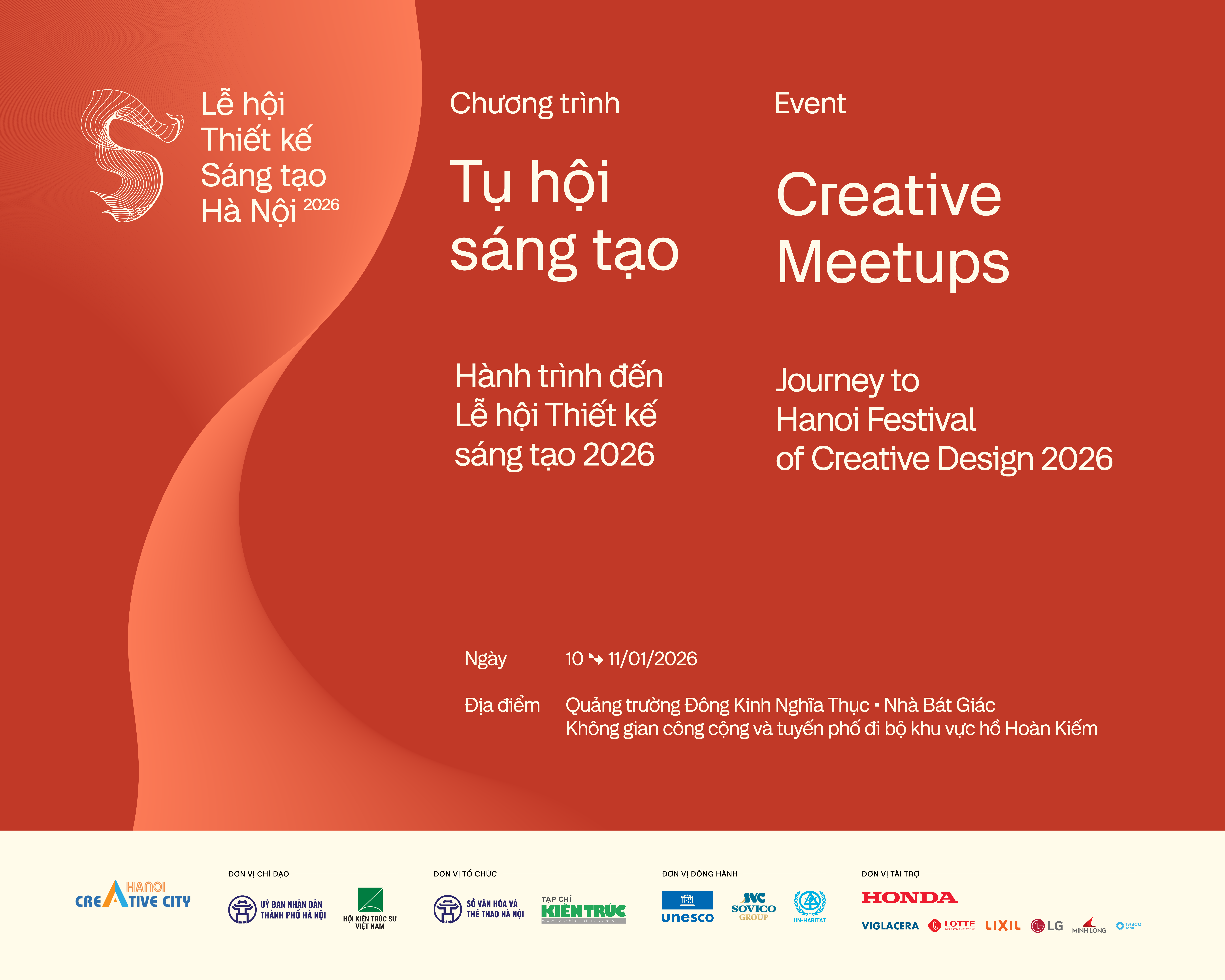Lễ hội Thiết kế Sáng tạo Hà Nội 2026 chính thức mời gọi các dự án và ý tưởng sáng tạo tham gia: Trưng bày, kết nối trong Chương trình Khởi động “Tụ hội Sáng tạo”, diễn ra vào ngay đầu năm tháng 01/2026 tại không gian đi bộ hồ Hoàn Kiếm và Ghi danh vào danh bạ sáng kiến sáng tạo Hà Nội, có cơ hội được đánh giá và xem xét hỗ trợ phát triển phù hợp.