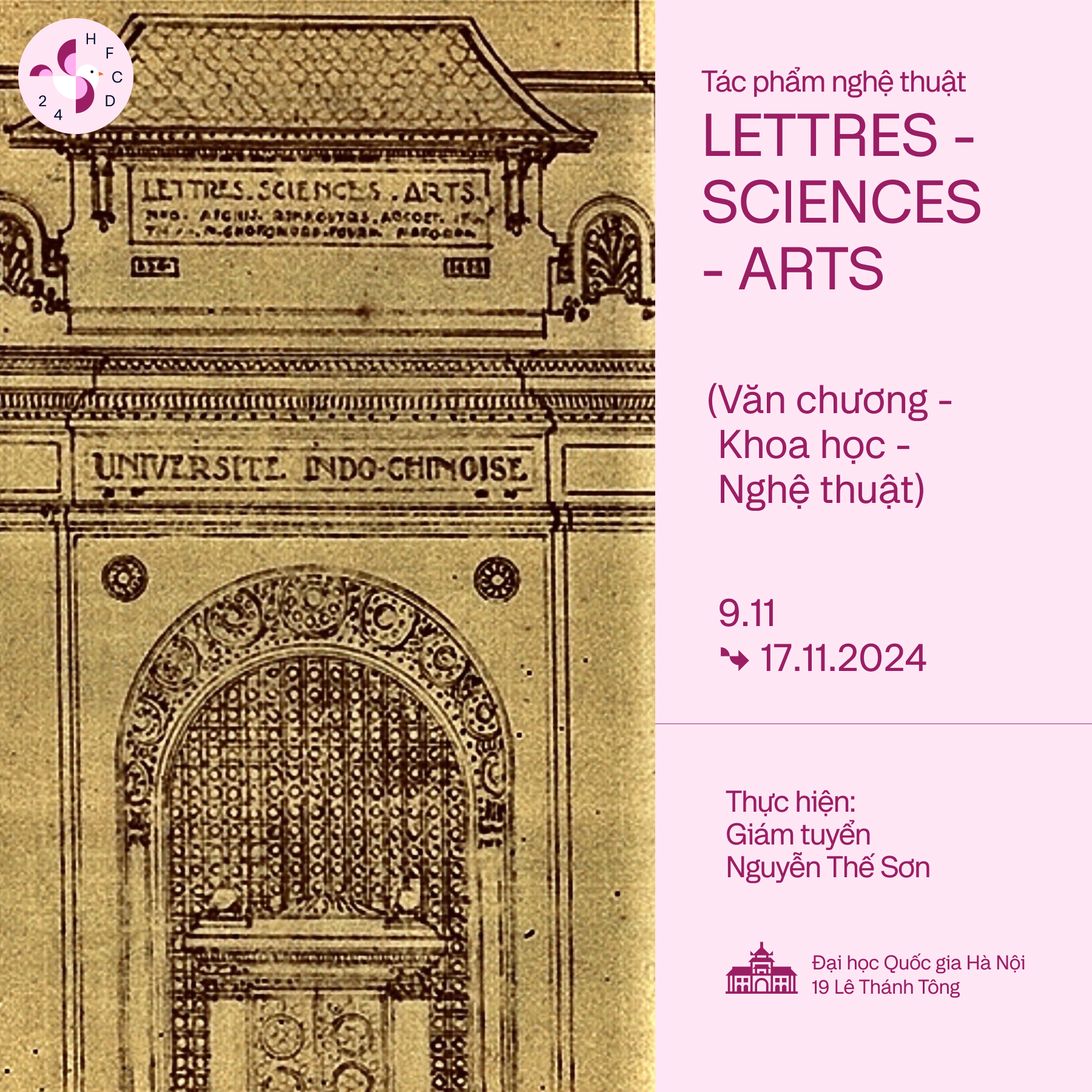 To encapsulate the inspiration evoked throughout the research, discussions, and curation process, artist Nguyễn Thế Sơn designed and completed a work titled LETTRES - SCIENCES - ARTS, which has been prominently installed on the rear façade of the building as a tribute and a profound reminder of this historical period in the development of higher education in Vietnam.