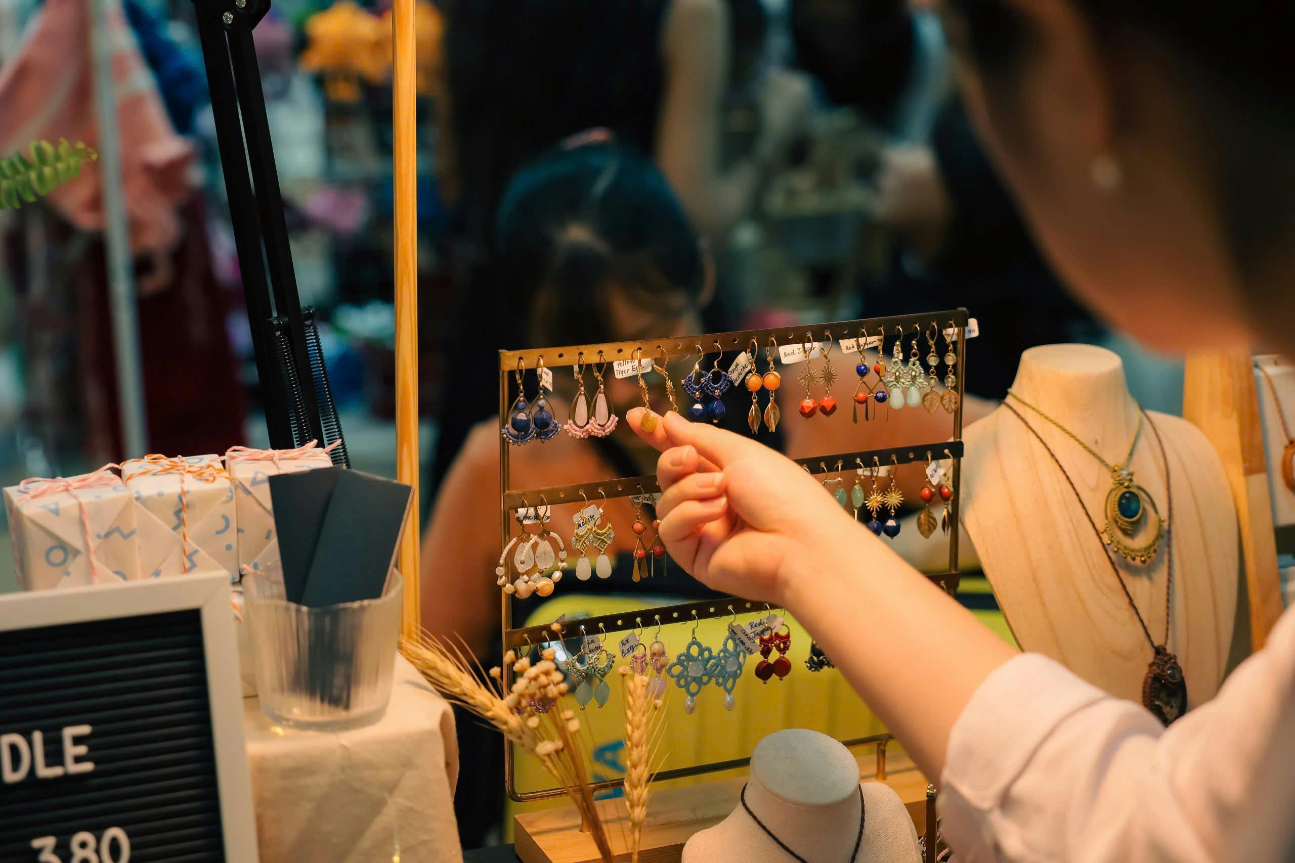 Vô vàn sản phẩm khác nhau, nhưng nếu phân nhóm theo chất liệu, gồm đồ giấy, đồ da, đồ vải, đồ kim hoàn, đồ gỗ…; phân loại theo công năng thì các sản phẩm chủ yếu là đồ thời trang, trang trí nhà cửa… Trong đó, đồ trang sức cũng khác biệt so với những “lề lối”cũ. Điển hình như Dewdrop of Honey (hay gọi tắt là D.O.H) với những món đồ phụ kiện làm từ chất liệu da thật kết hợp cùng đá tự nhiên hay polymer clay. Sản phẩm của D.O.H luôn lấy thiên nhiên làm cảm hứng sáng tạo, nổi bật là những đôi khuyên hay pin cài làm từ da vegtan (da thuộc thảo mộc) được tạo hình những chiếc lá và nhuộm màu thủ công. Năm nay, D.O.H có thêm dòng sản phẩm mới là những chiếc giày xinh xắn, vừa có thể làm móc khoá, vừa có thể làm đồ trang trí...